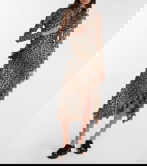 Leopard-print Midi Skirt - Green