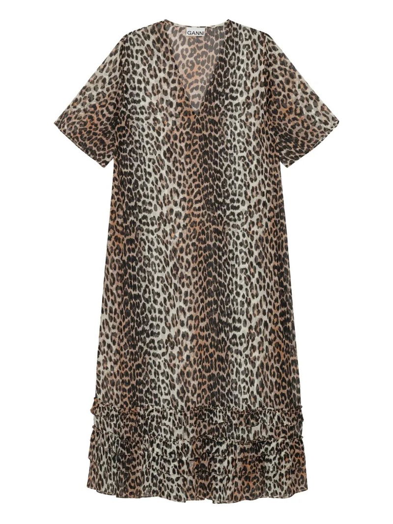 Leopard-print Ruffled Dress - Neutrals