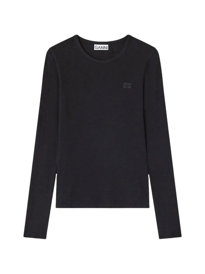 Black crew neck long sleeves logo detail.