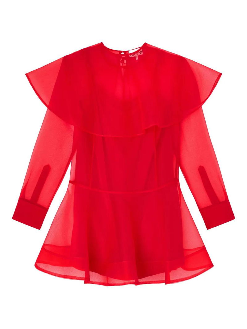 Red layered long sleeves straps detail above-the-knee length round neck.