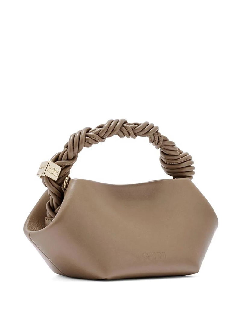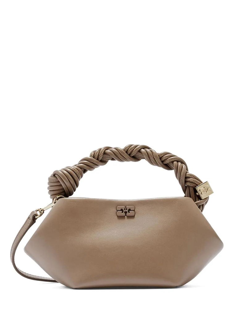 Brown detachable shoulder strap logo plaque gold-tone hardware magnetic fastening.