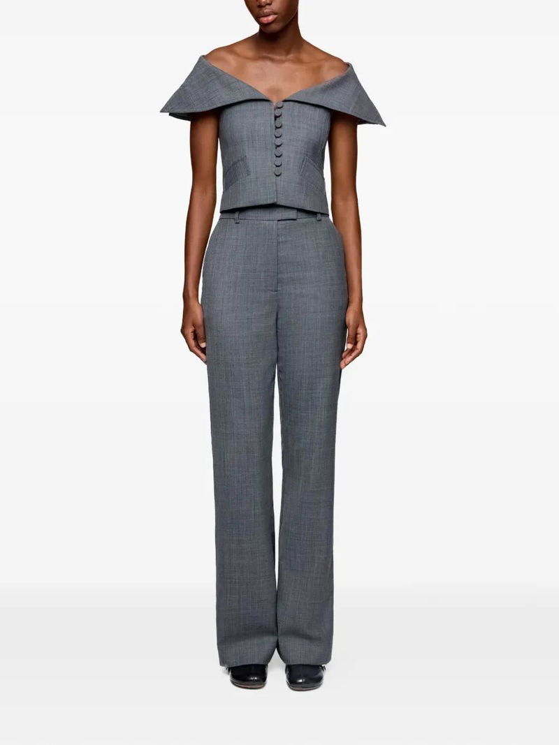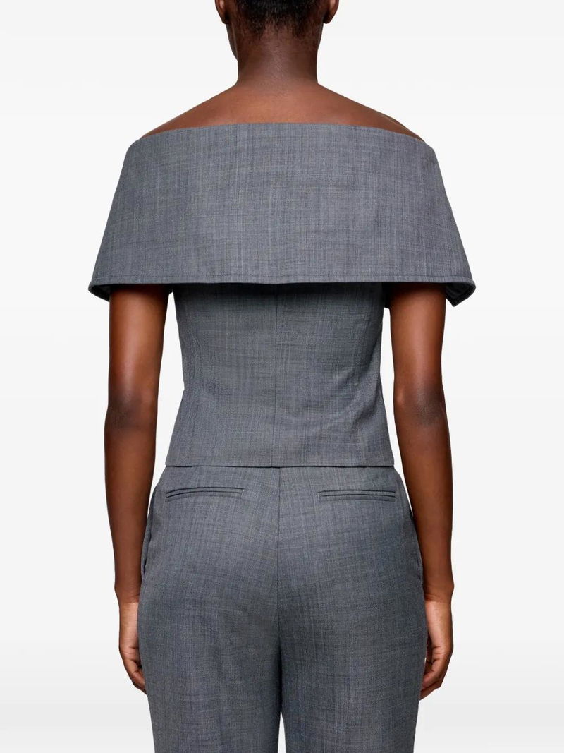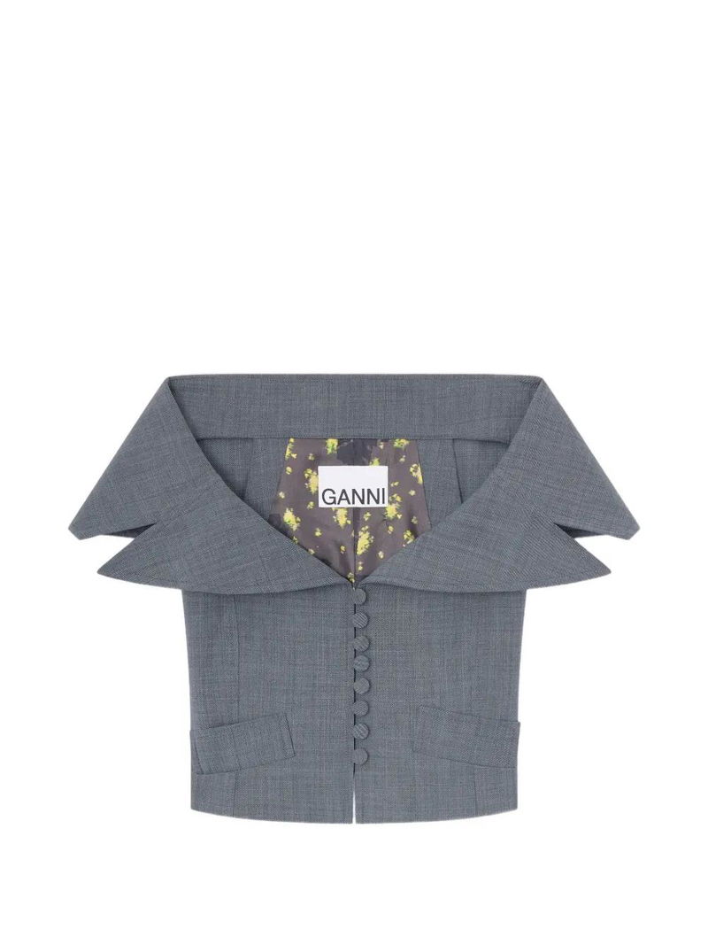 Grey, floral print, off-shoulder, button detail, flap pockets.