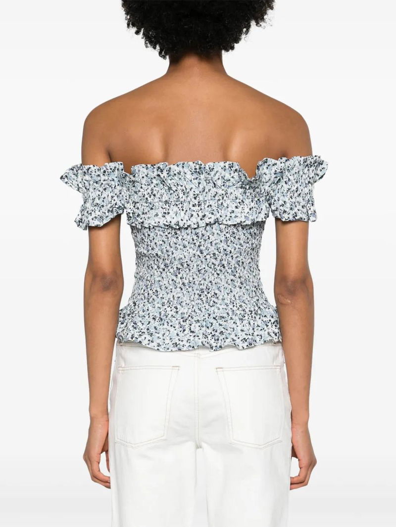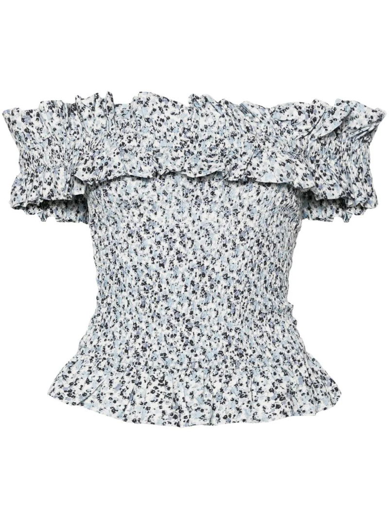 Off-shoulder Smocked Top - White