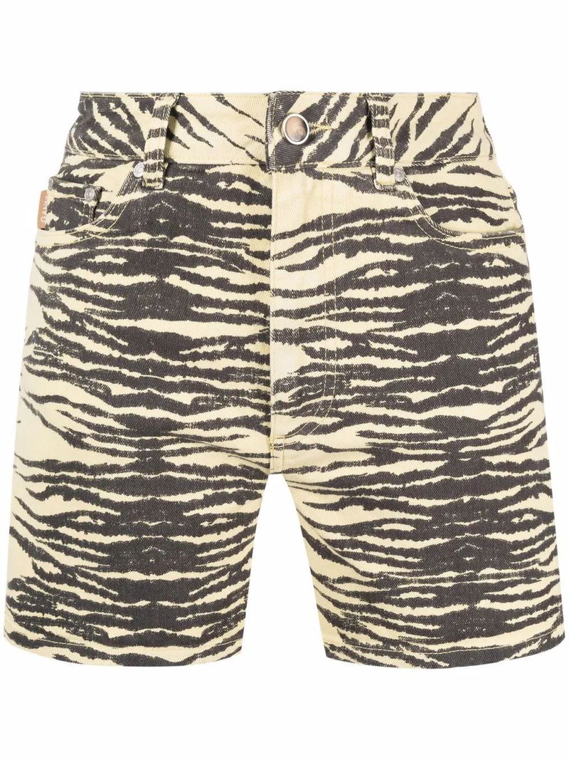 Pale banana/black organic cotton-blend zebra print logo print to the rear tonal stitching high-waisted front button and zip fastening belt loops classic five pockets POSITIVELY CONSCIOUS: At least 50% of the main material of this product meets our conscious criteria.