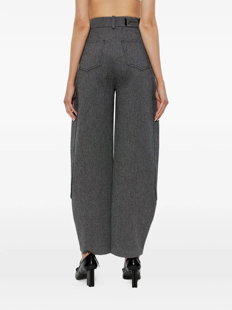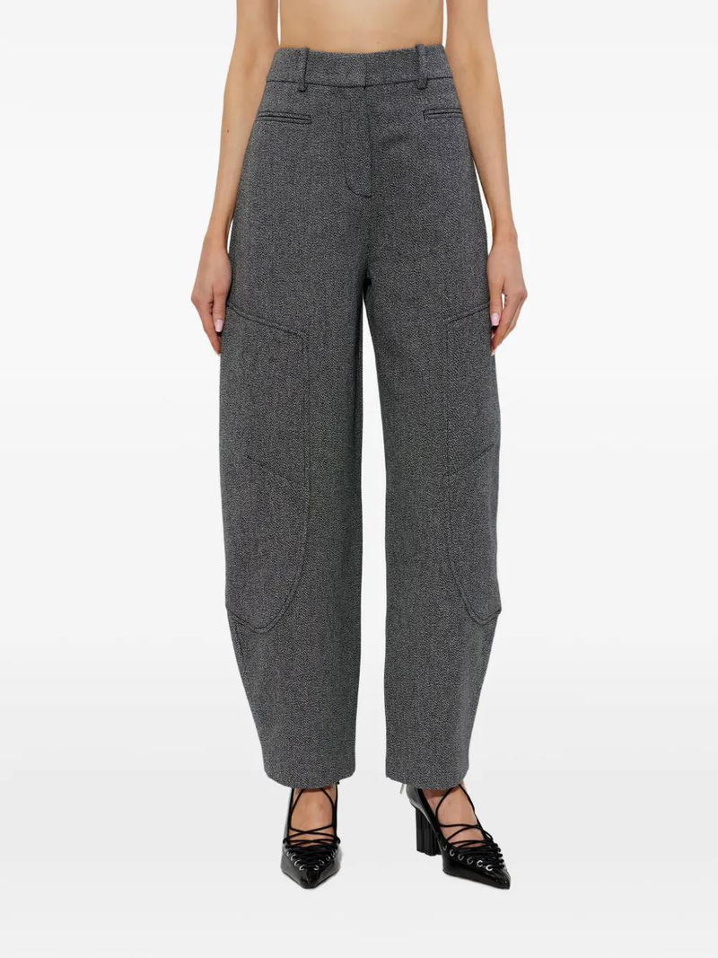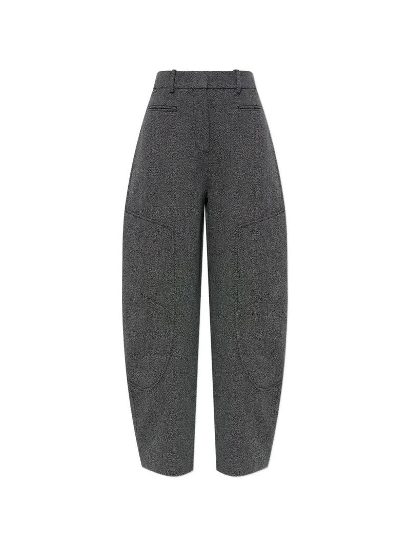 Grey, front pockets, back pockets, belt loops, panelled design, concealed fastening.