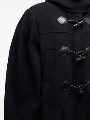 Black polka-dot pattern, classic hood, elasticated hem, front zip and press-stud fastening.