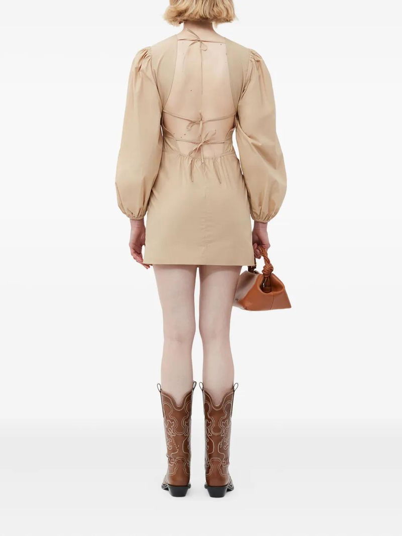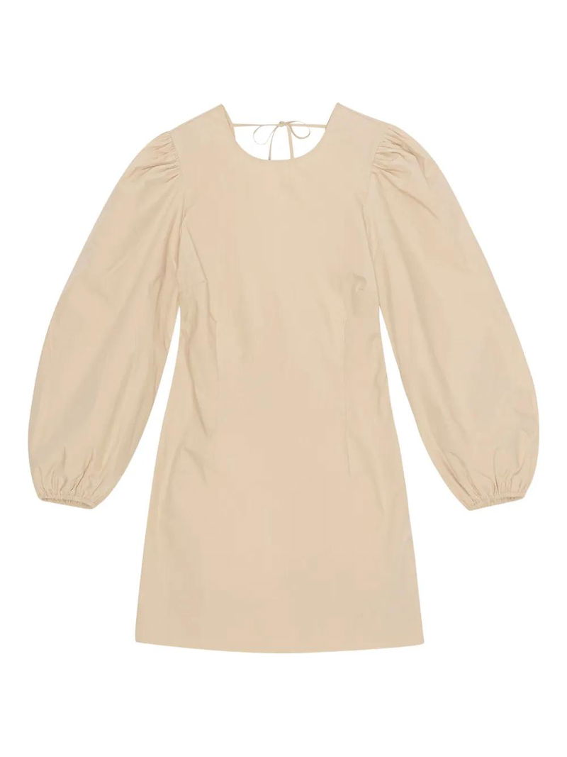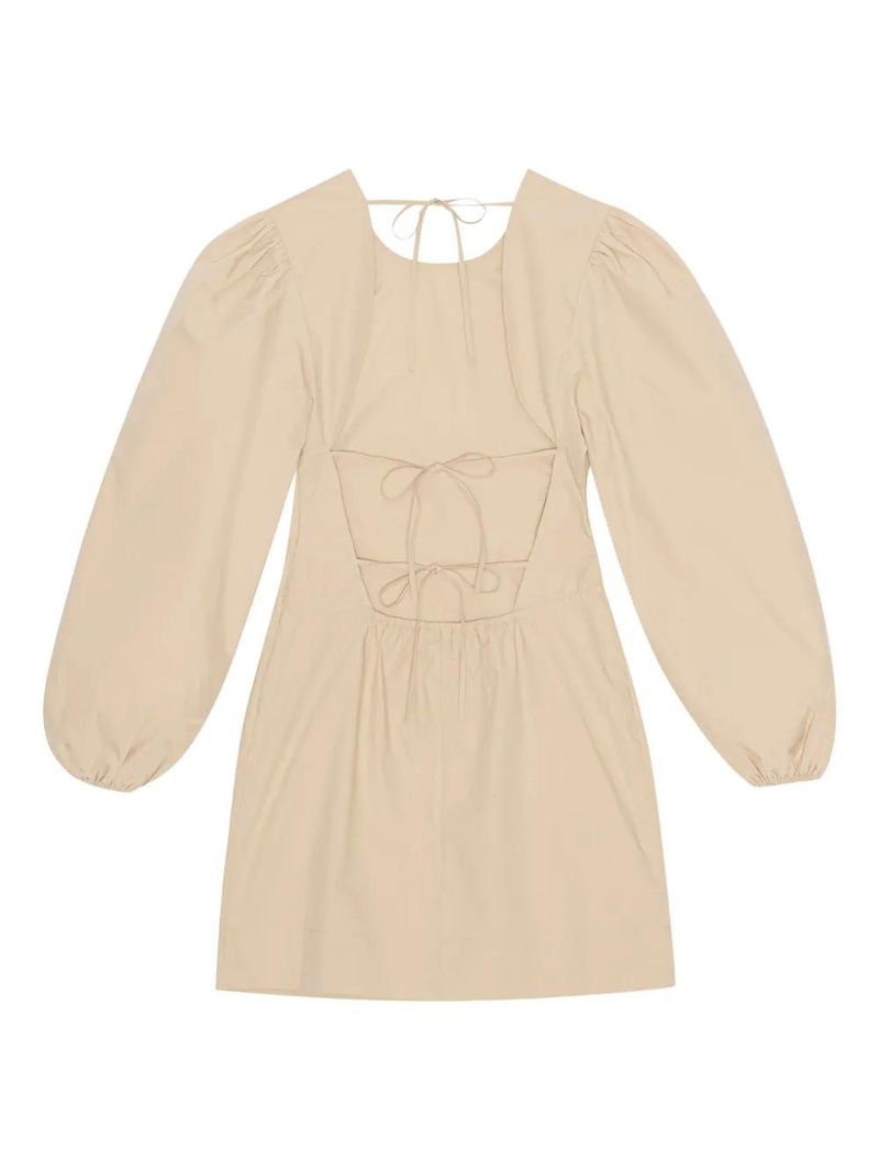 Puff-sleeve Tie-back Mini Dress - Neutrals