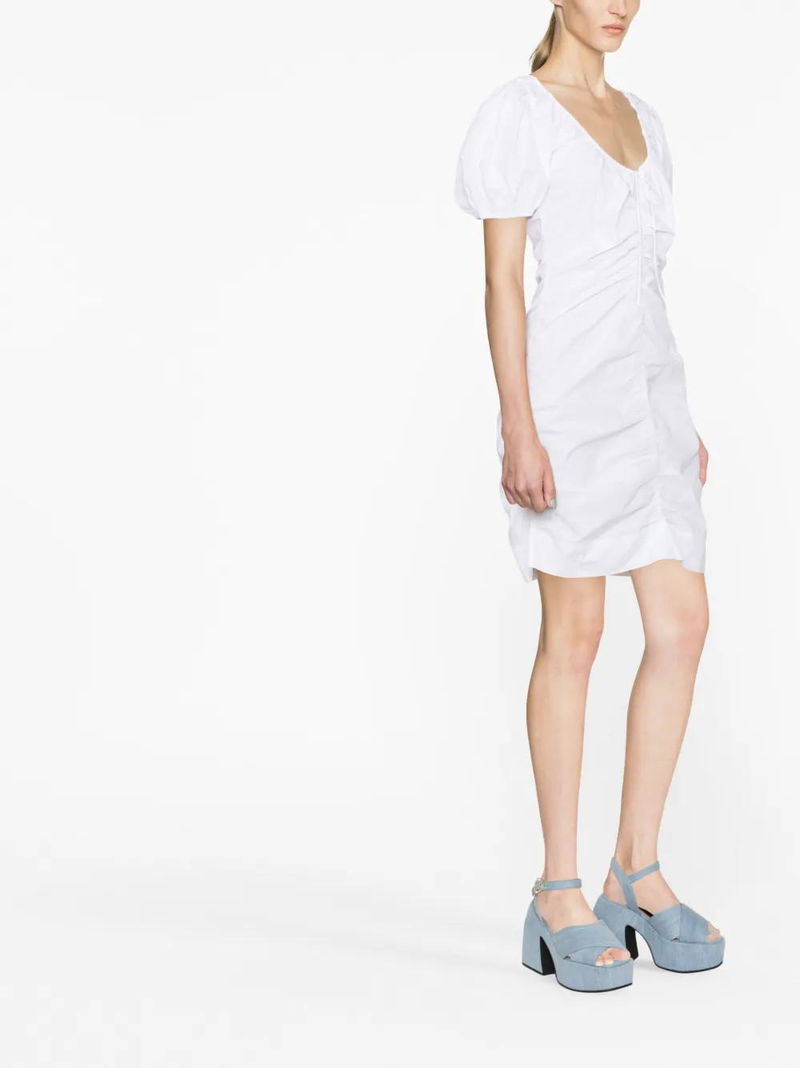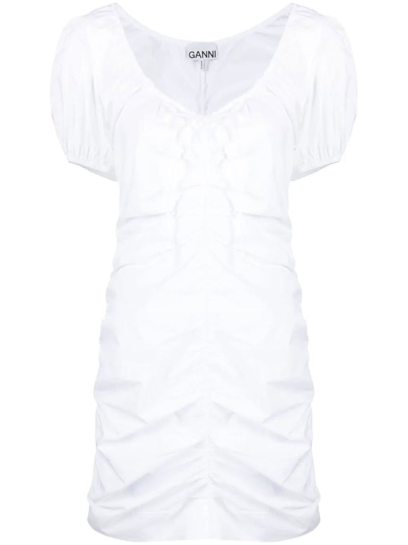 Ruched Puff-sleeve Minidress - White