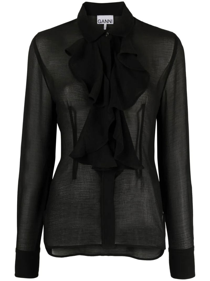 Ruffled Chiffon Shirt - Black