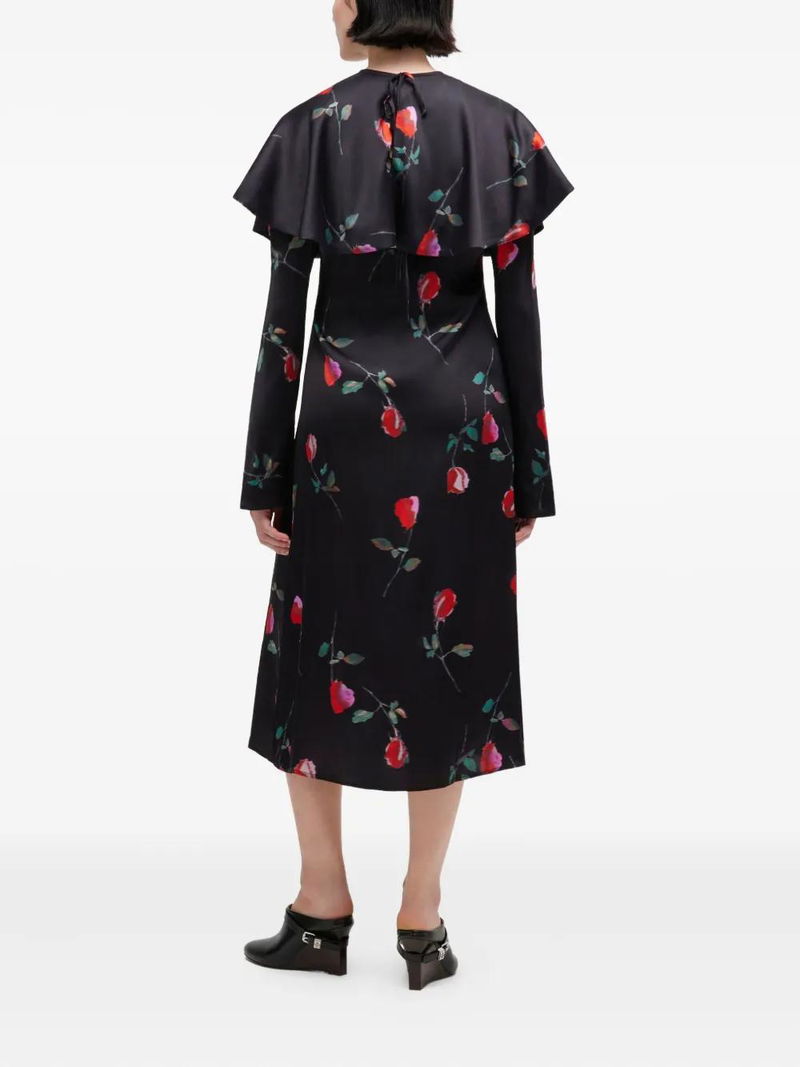 Ruffled Floral Dress - Black