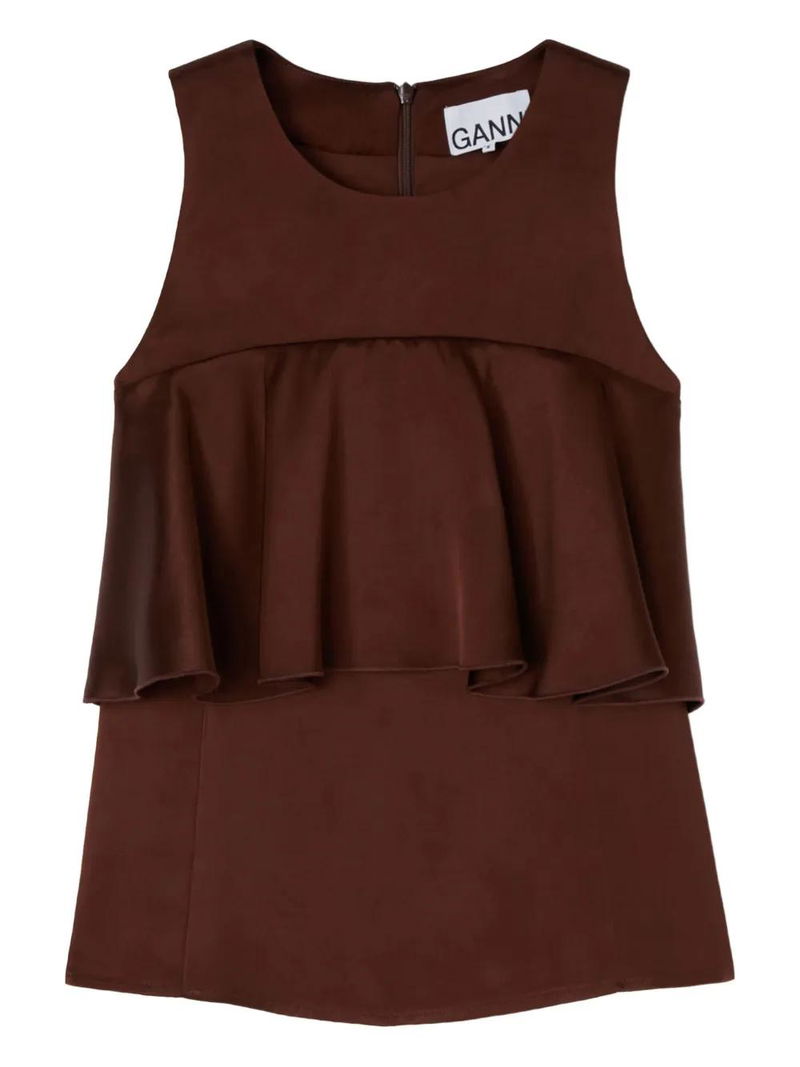 Ruffled-satin Top - Brown