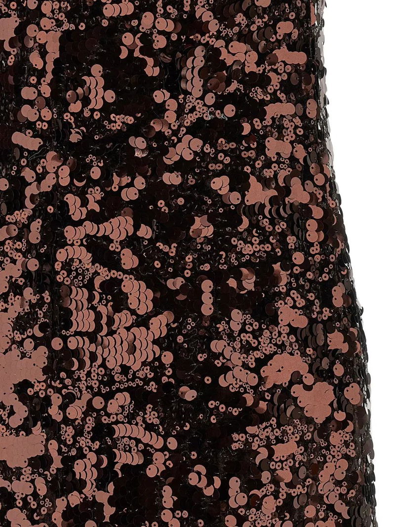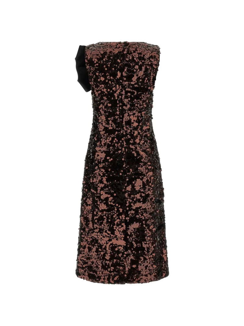 Brown sequins bows round neck sleeveless back split.