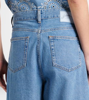 Relaxed-fit tapered non-stretch organic cotton denim jeans. Fading and whiskering throughout.· High-rise· Belt loops· Five-pocket styling· Zip-fly· Logo patch at back pocket· Contrast stitching in orange.