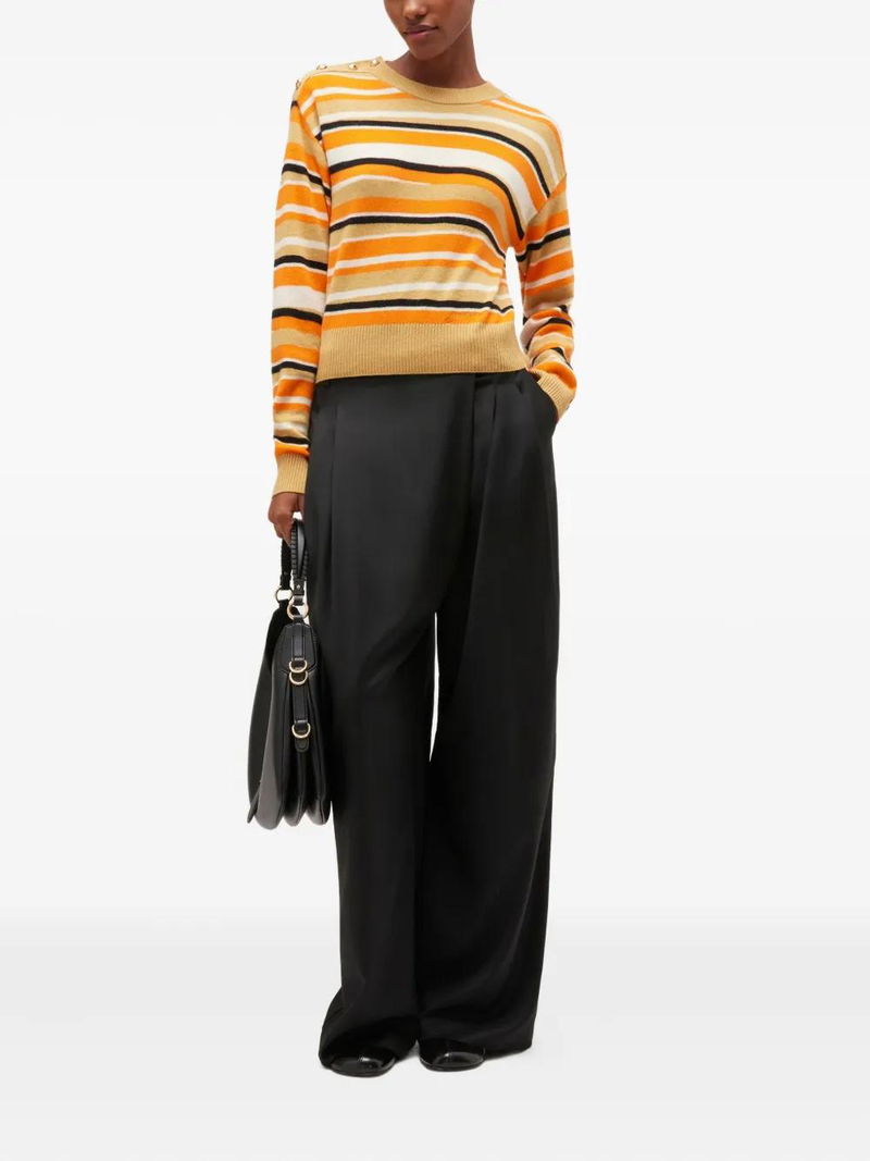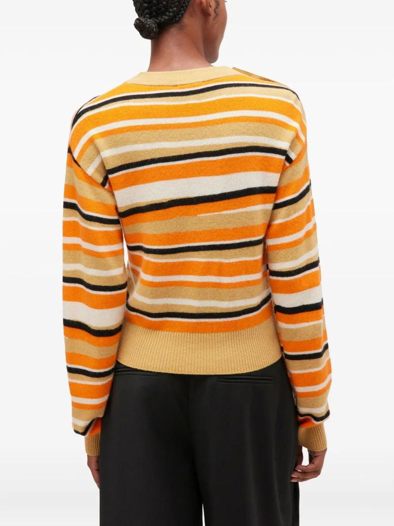 Striped Button-detailed Sweater - Yellow