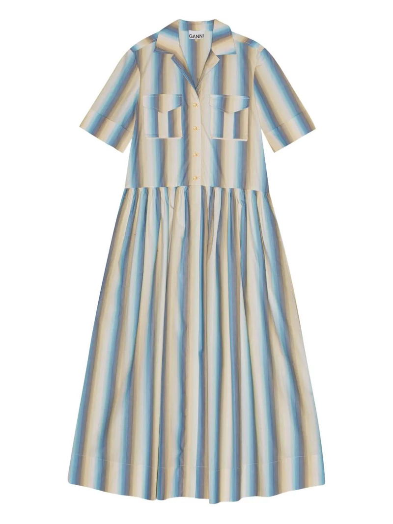 Striped Button-up Shirt Dress - Neutrals