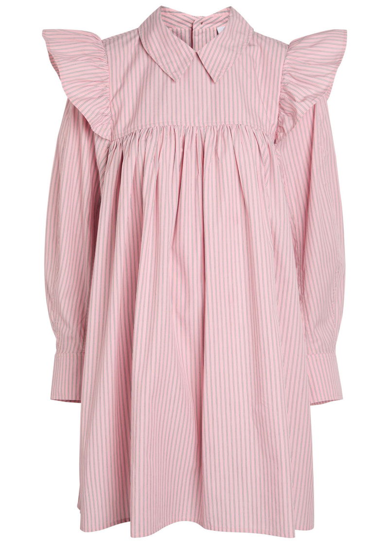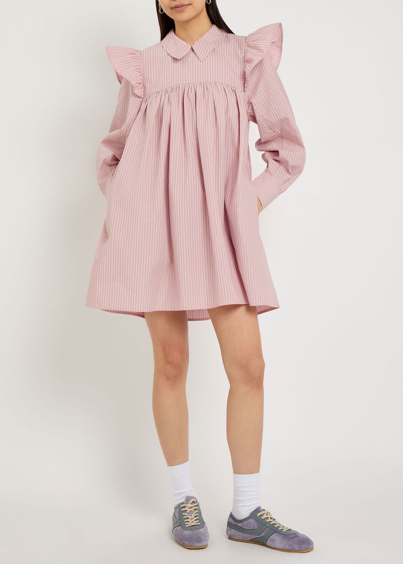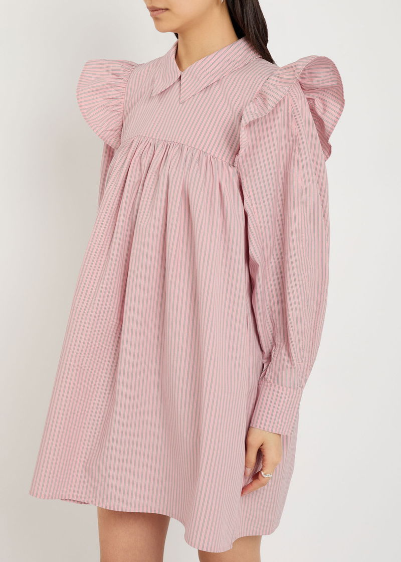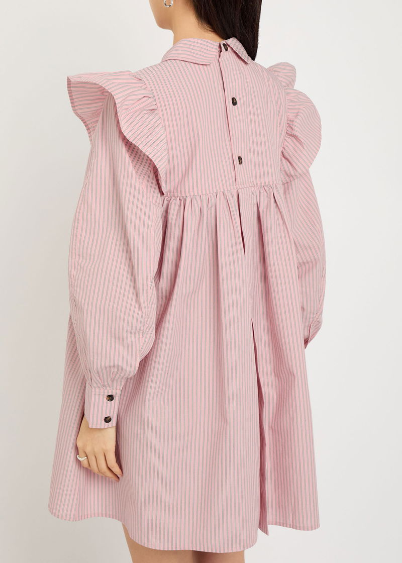 Striped Frilled Cotton-poplin Mini Shirt Dress
