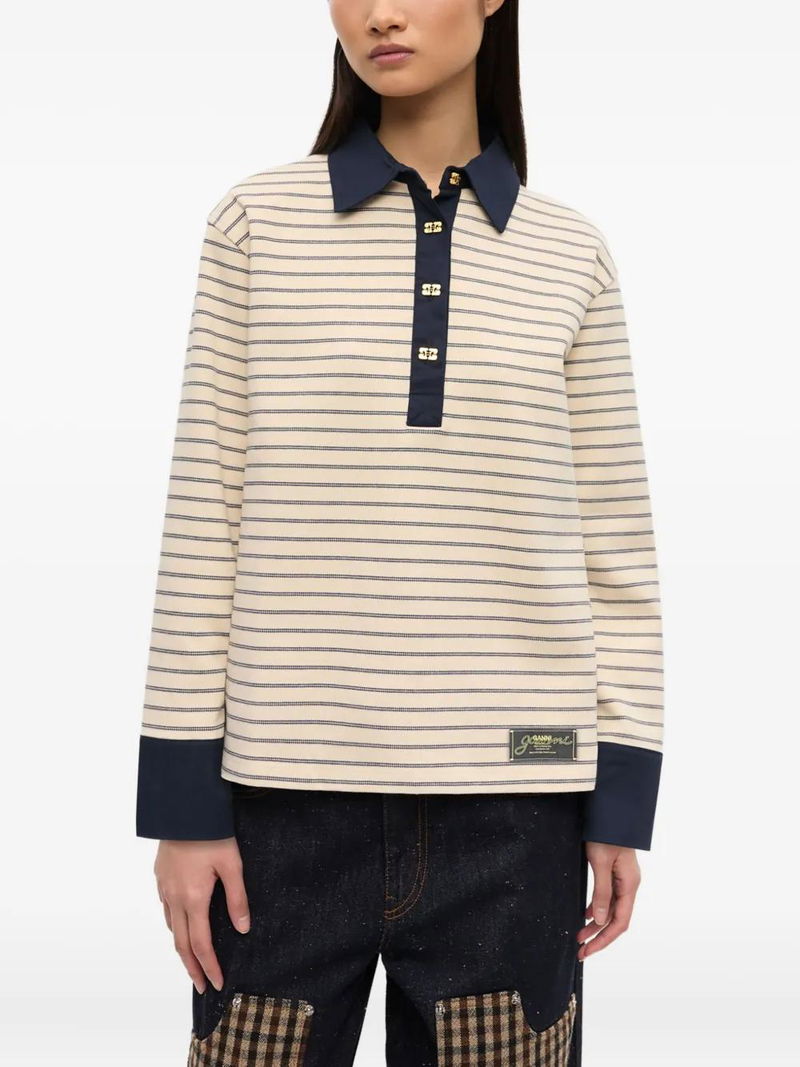 Striped Long-Sleeve Polo Shirt.
