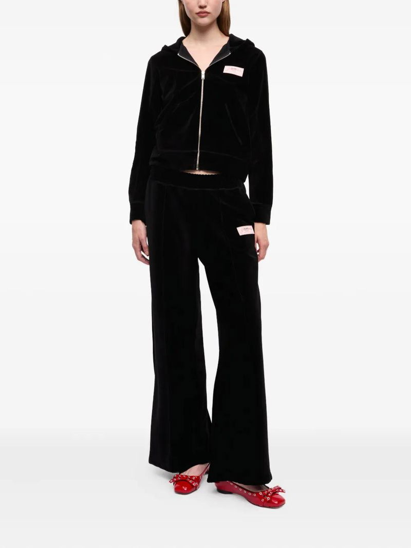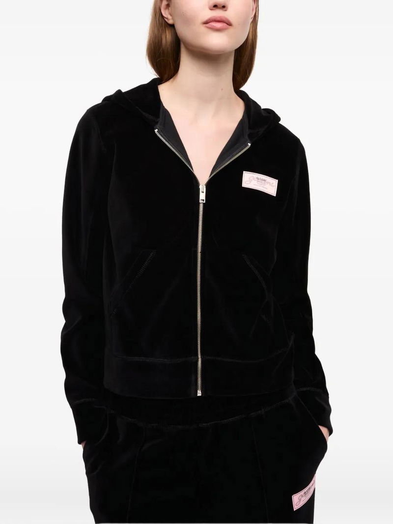 Velour Zip-up Hoodie - Black