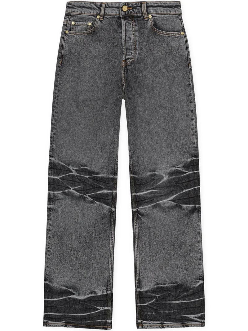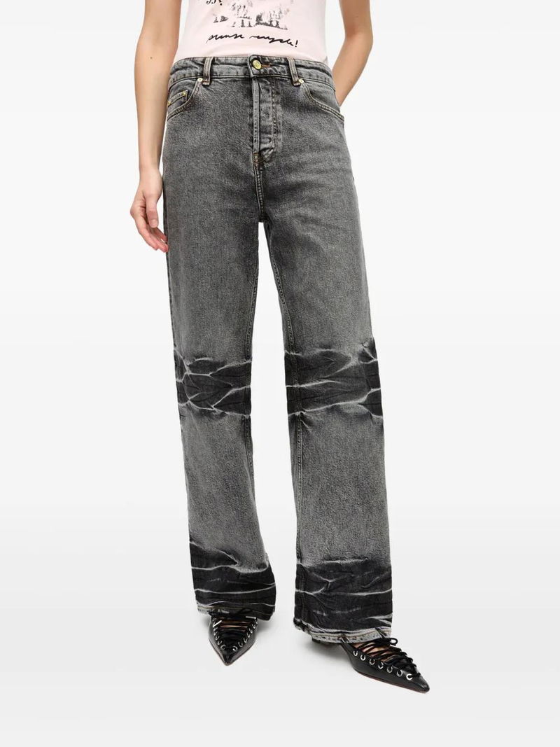 Whiskering-effect Wide-leg Jeans - Black