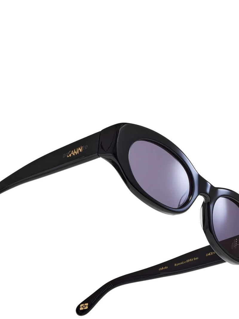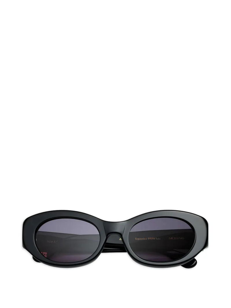 Black oval frame, tinted lenses.