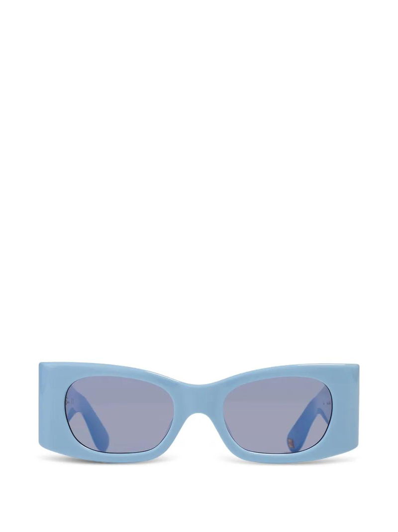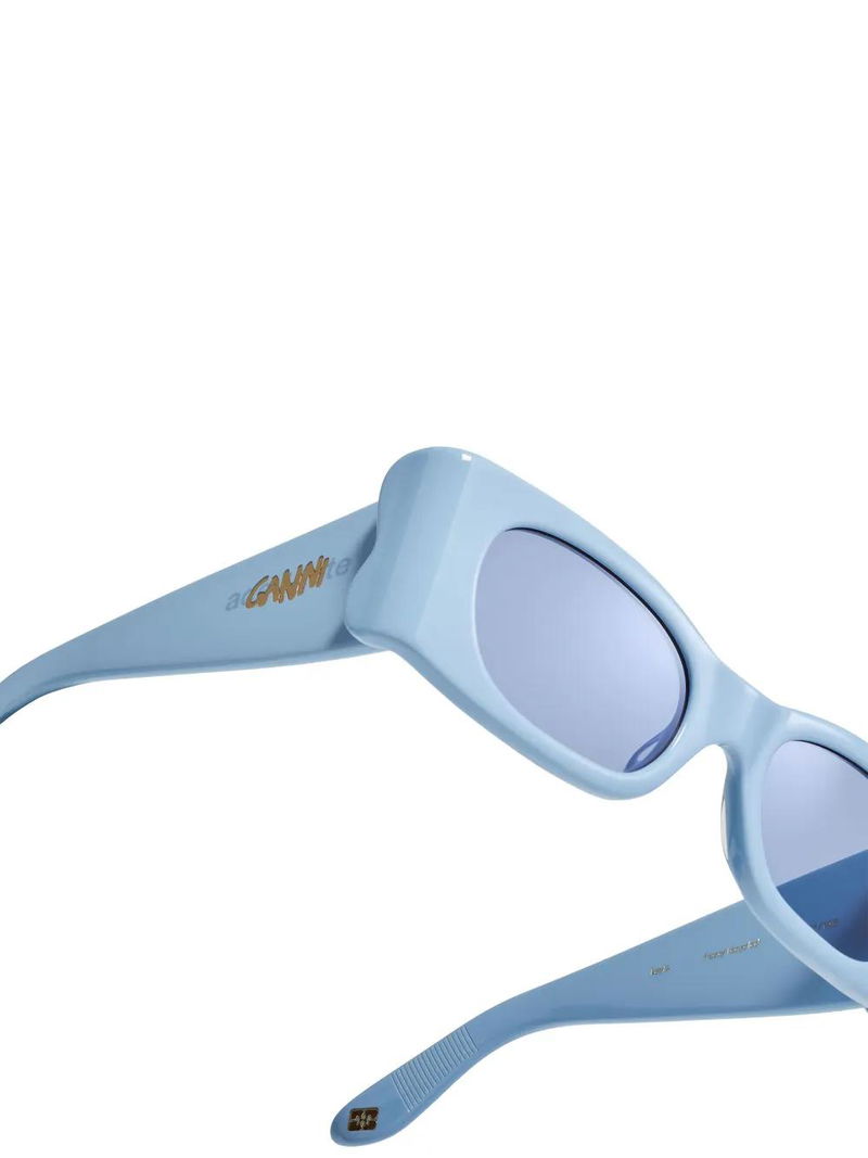 Light blue, logo detail, tinted lenses.