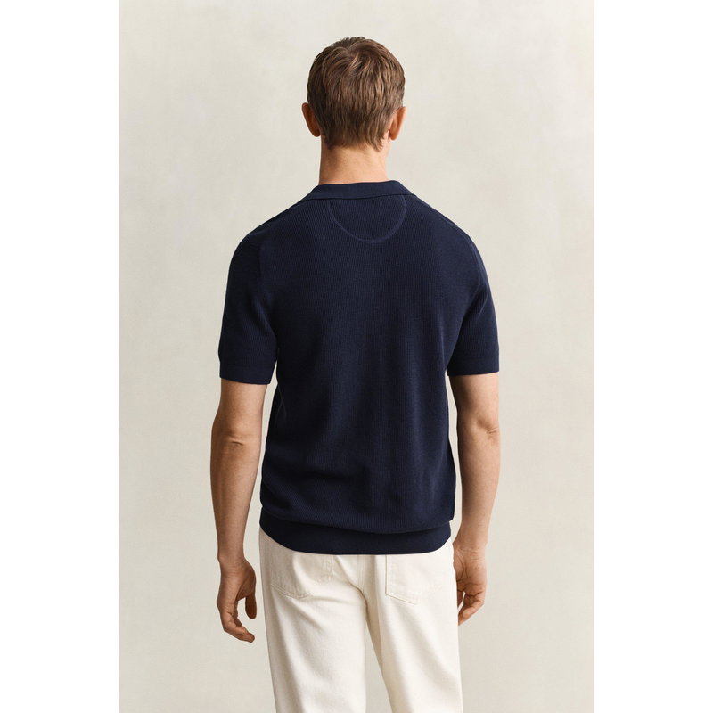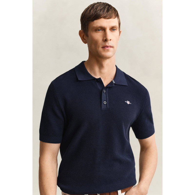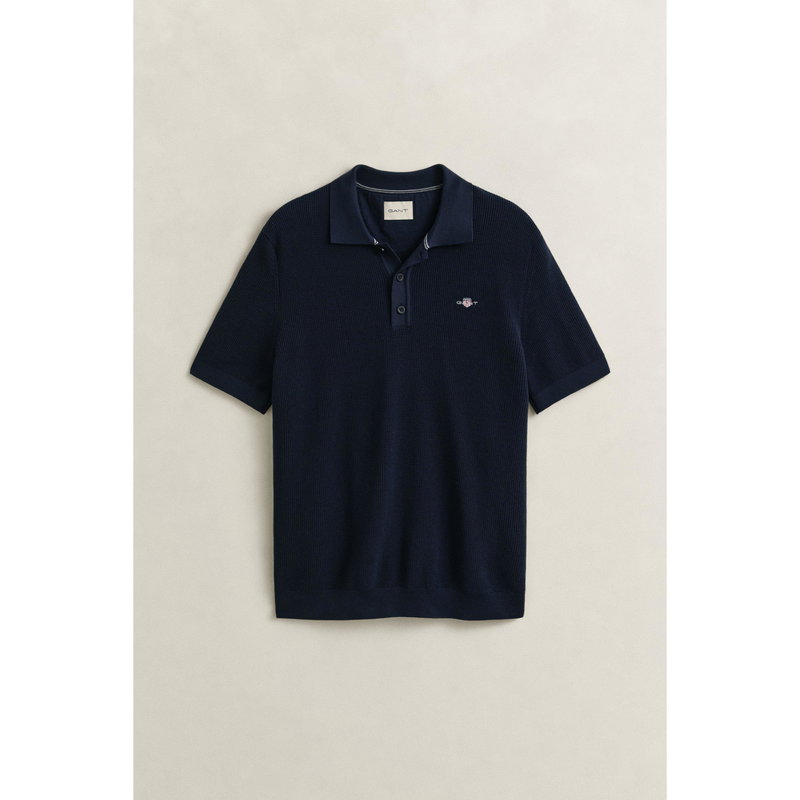 The Gant Men's Short Sleeve Polo Shirt maintains a straightforward profile for everyday wear. The textured fabric adds subtle depth.