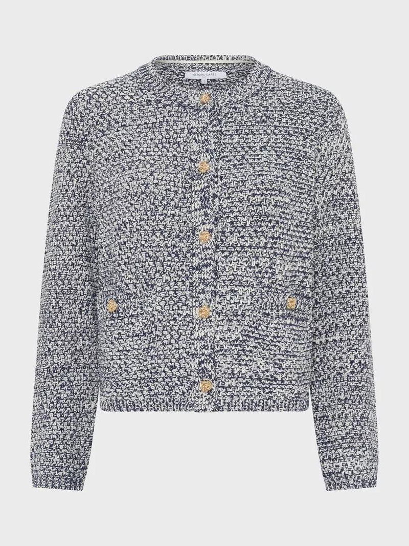This tweed knit cardigan keeps you comfortable all day, whether you're heading to the office or catching up with friends. Soft cotton blend fabric and an easy crew neck make it a standout choice for any occasion.