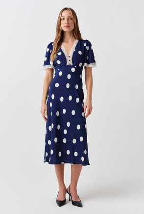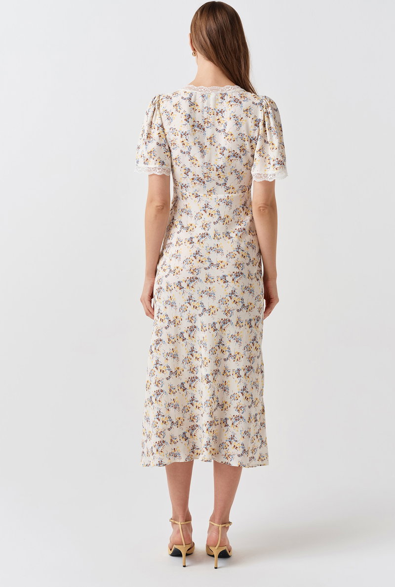 Exude effortless grace in the Belle dress, a signature v neck lace dress that marries vintage inspiration with a modern edge. Beautifully crafted from our fluid crepe, it features intricate lace trims and delicate button detailing for a romantic finish. The bias-cut silhouette creates a flattering v neck midi dress profile that drapes beautifully to a midi length. A timeless v neck summer dress or occasion piece, it’s the essential v neck dress for your wardrobe.