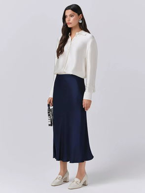 In luxurious lightweight satin, this skirt is perfectly paired with the Evelyn top. Colette is a versatile skirt which can be worn throughout the season, with a seam detail down the front and a flared style this is this a must have season.