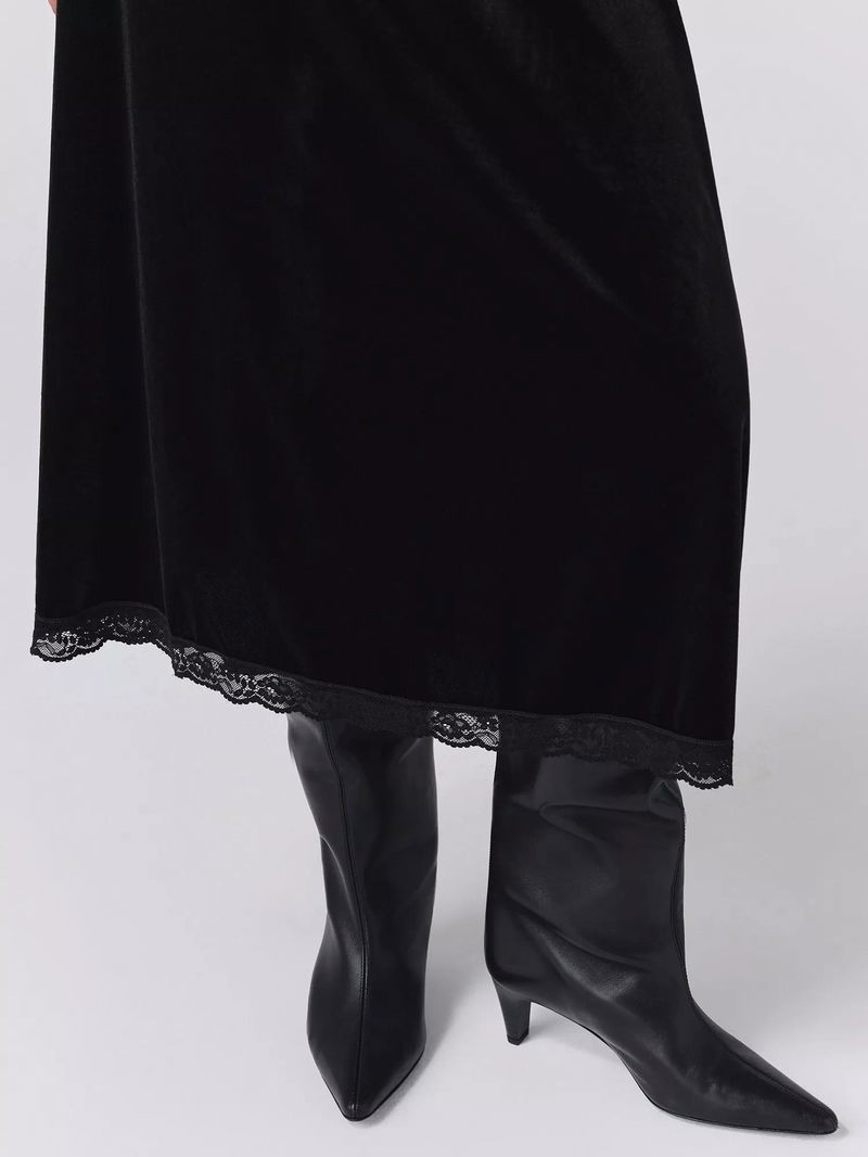 Made to move with you, this midi skirt from Ghost is A-line in shape and finished with lace detailing at the hem.