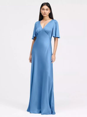 Meet Nora, a wonderfully romantic and vibrant choice for your next special occasion. This stunning maxi dress is sure to turn heads. The design features a flattering surplice V-neckline leading into a fitted bodice. The standout details are the charming ruffled shoulder, adding a playful and distinctly feminine touch to the silhouette. The skirt drapes gracefully to the floor, offering soft movement and timeless elegance with every step.