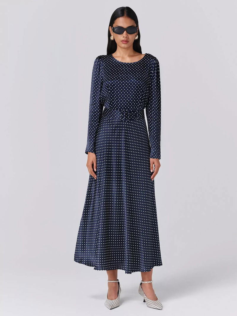 This maxi A-line dress brings charm to your day with its playful polka dots and soft round neck. The flowing viscose keeps you comfortable while offering a clever twist on a classic silhouette.