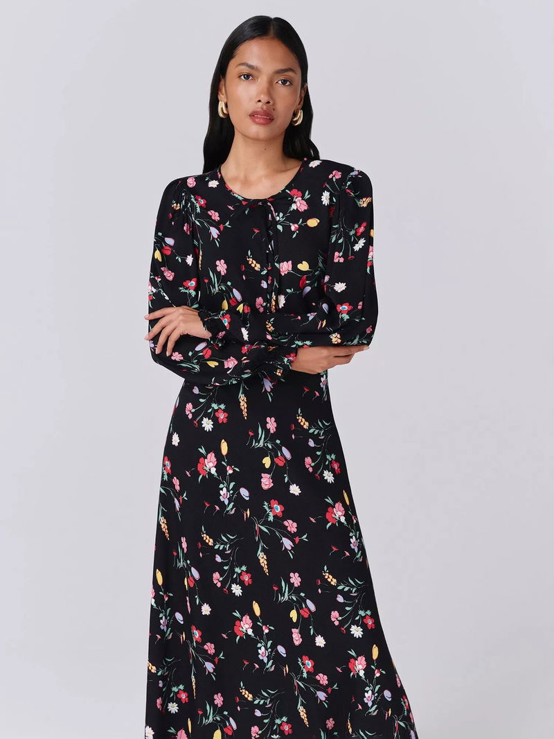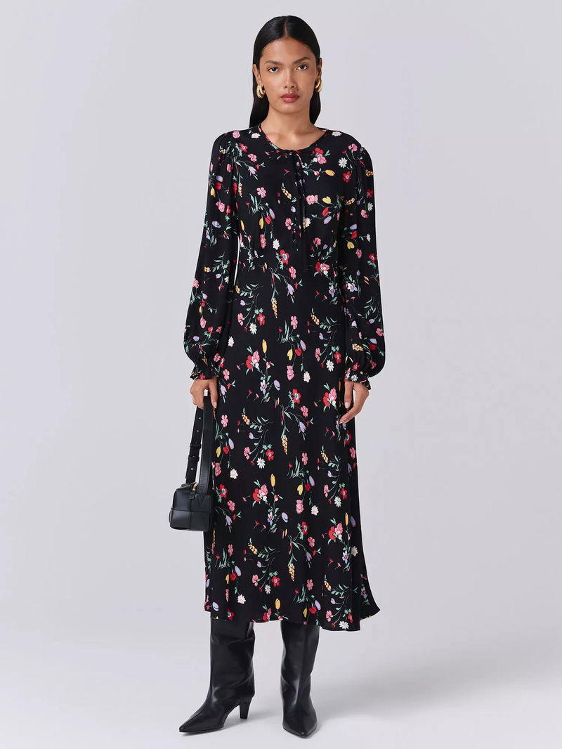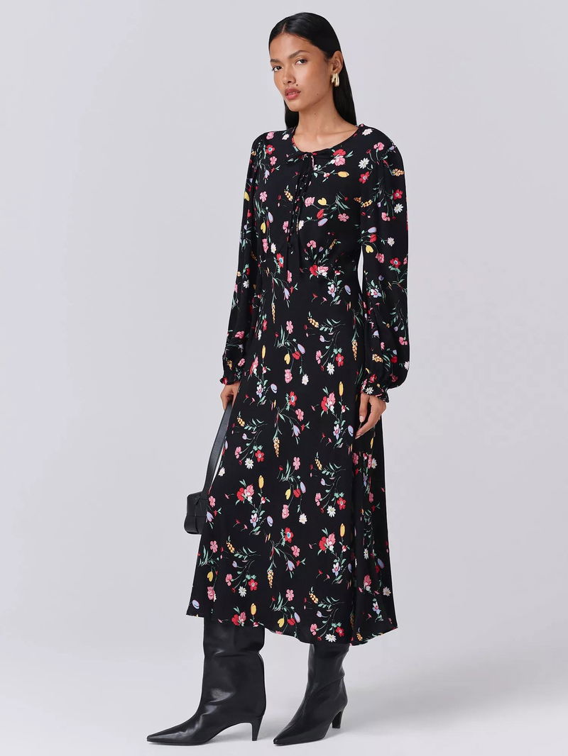 Proof that the A-line shape is a classic for a reason. This long sleeve midi dress from Ghost features a simple round neck and an always on-trend floral pattern.