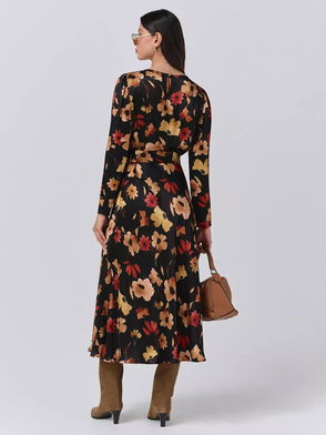 Victoria Floral Print Crepe Knee Length Dress