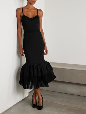 Slinky ruched dresses like this one balanced the casual Americana looks on Givenchy's Spring 2023 runway - Creative Director Matthew Williams believes that clashing styles make the perfect modern wardrobe. It's cut for a figure-hugging fit from crepe de chine and falls to a maxi length with a slit along the back.