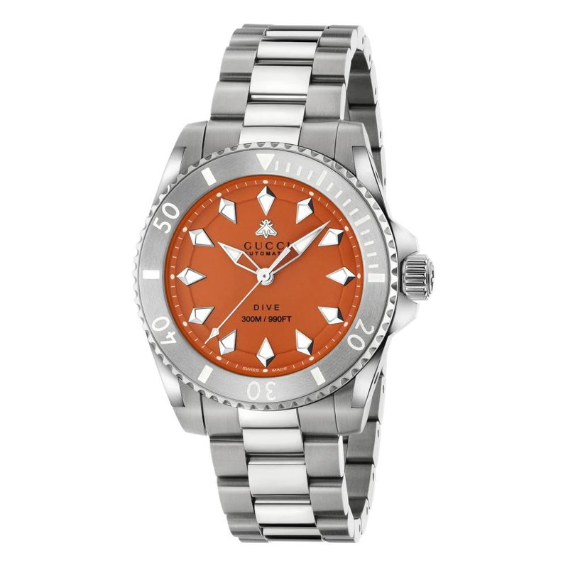 40 Mm Steel Case, Orange Dial With Bee, Steel Bezel, Steel Bracelet