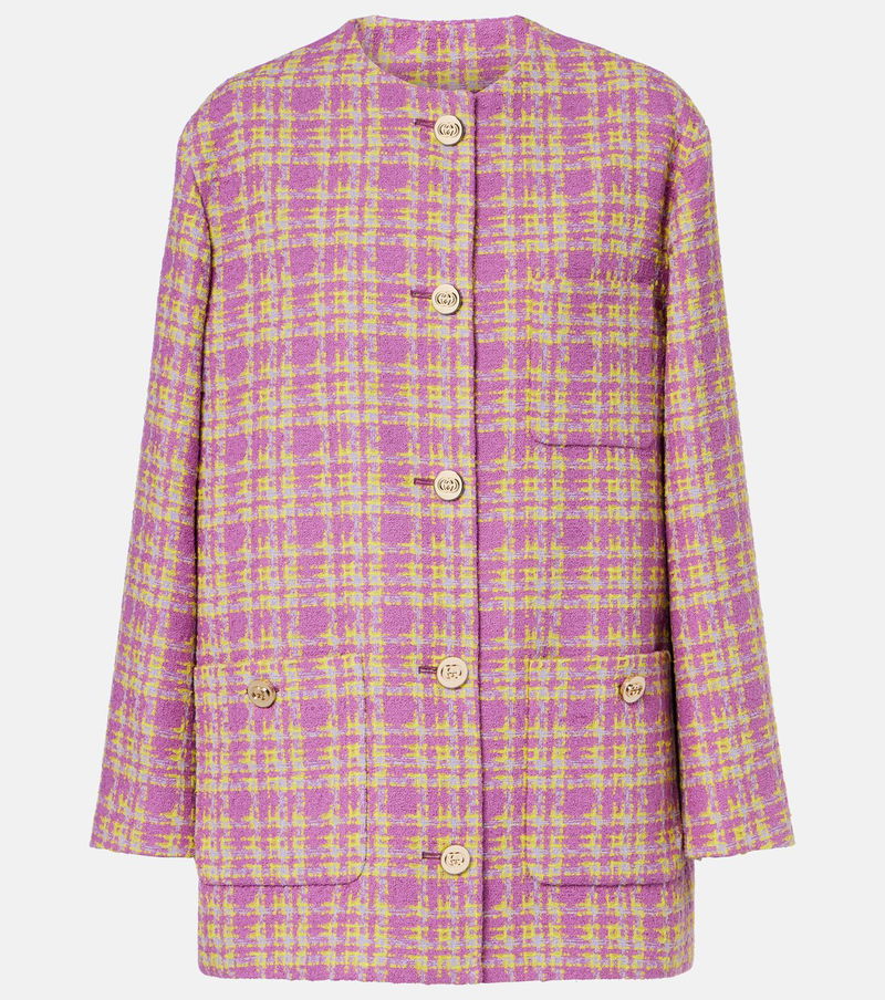 Synonymous with timelessness, Gucci designs refined styles to wear for seasons to come. This elegant jacket is made from checked cotton-blend tweed with Interlocking G buttons running along the front.