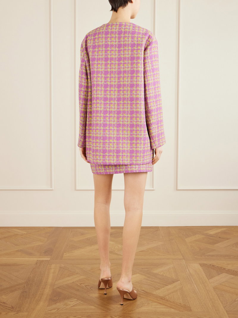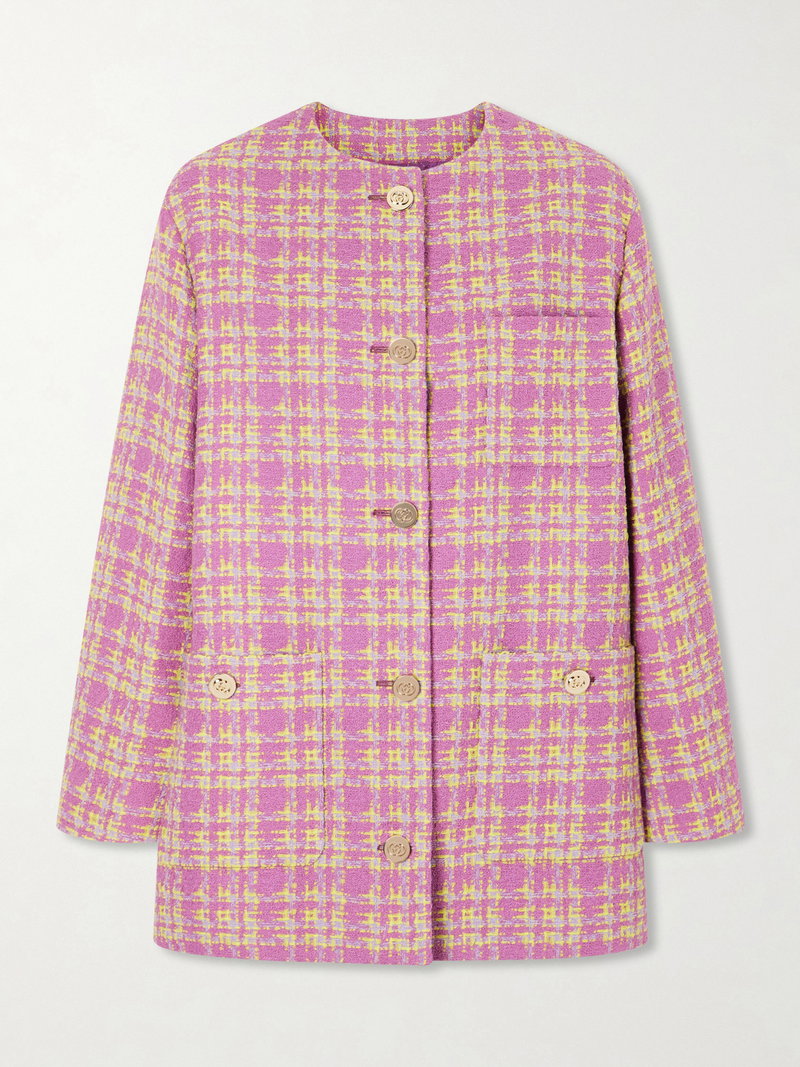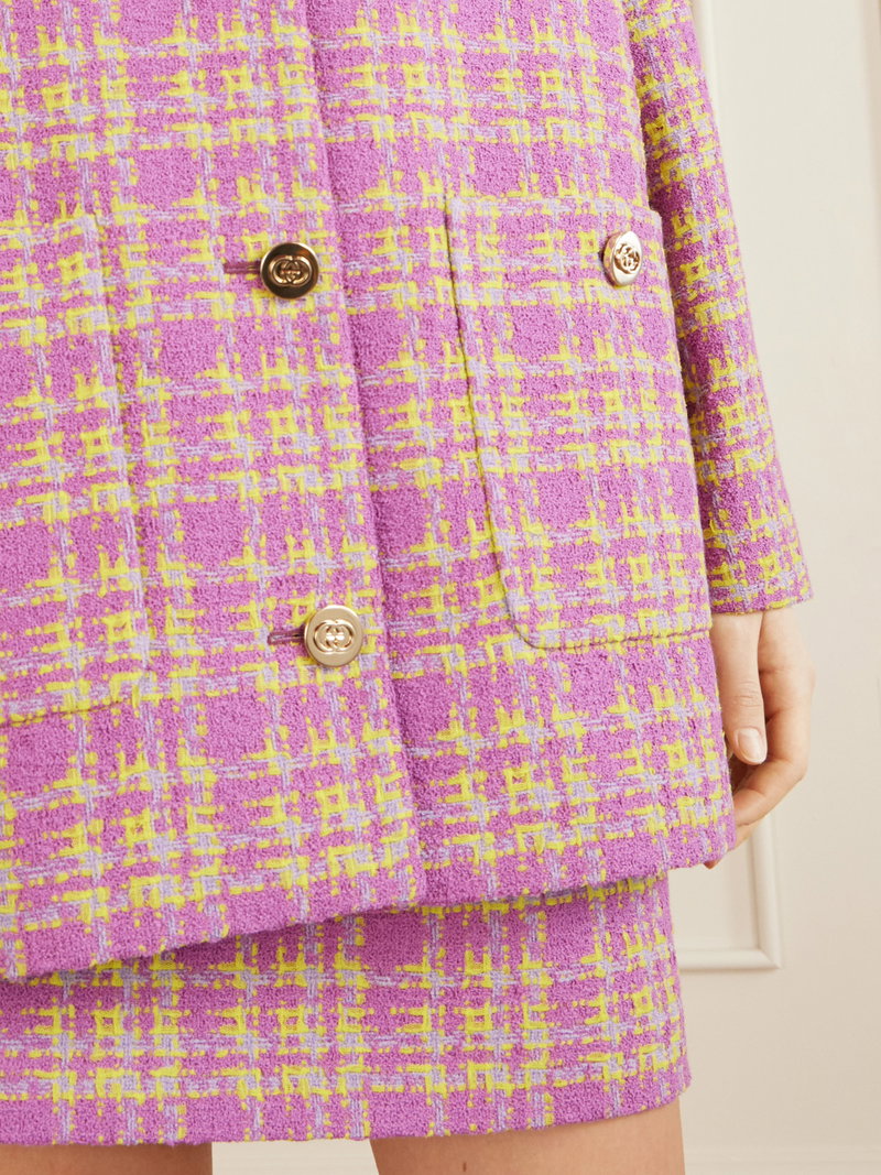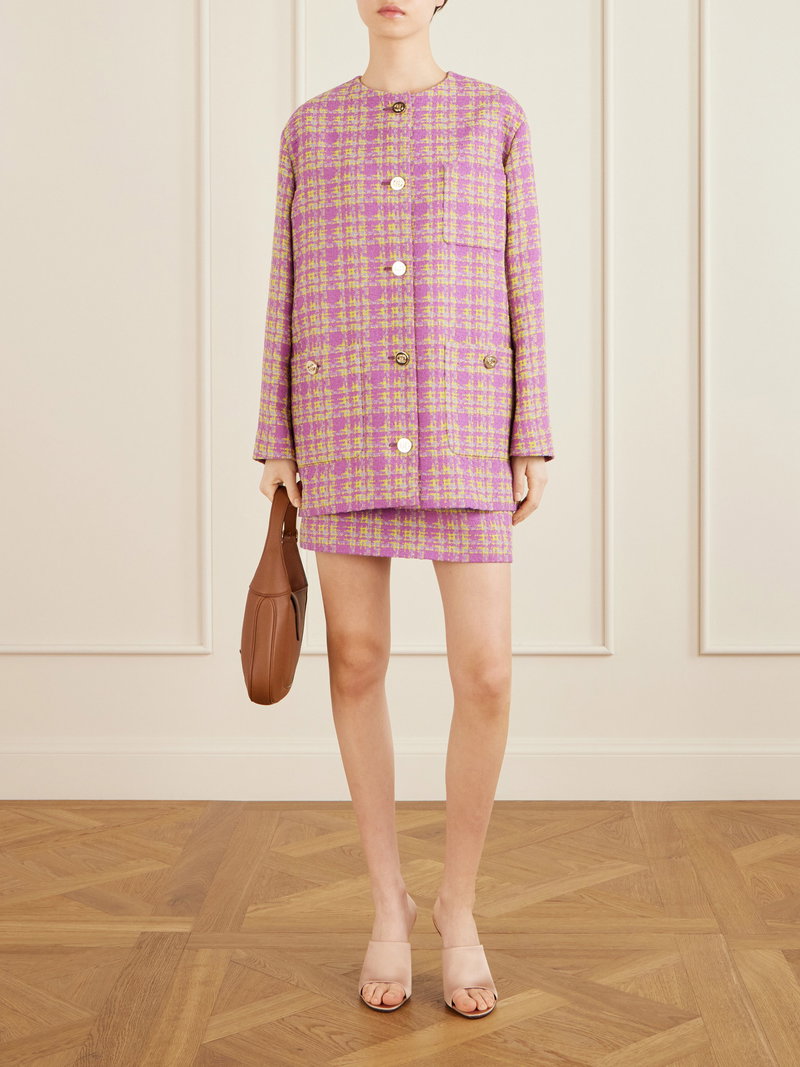 Gucci’s jacket nods to the avant-garde styles of the 1920s. Made from wool and cotton-blend tweed, it’s cut to a slightly longer length and detailed with logo-embellished buttons through the front. Style it with block heels.