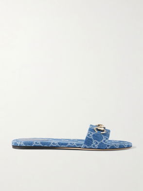 Embellished Printed Denim Sandals
