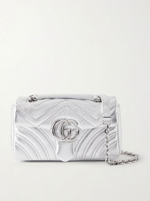 Let Gucci's GG Marmont shoulder bag be the focal point of your ensembles. Made from metallic leather with quilting throughout, the design comes with a detachable chain shoulder strap.