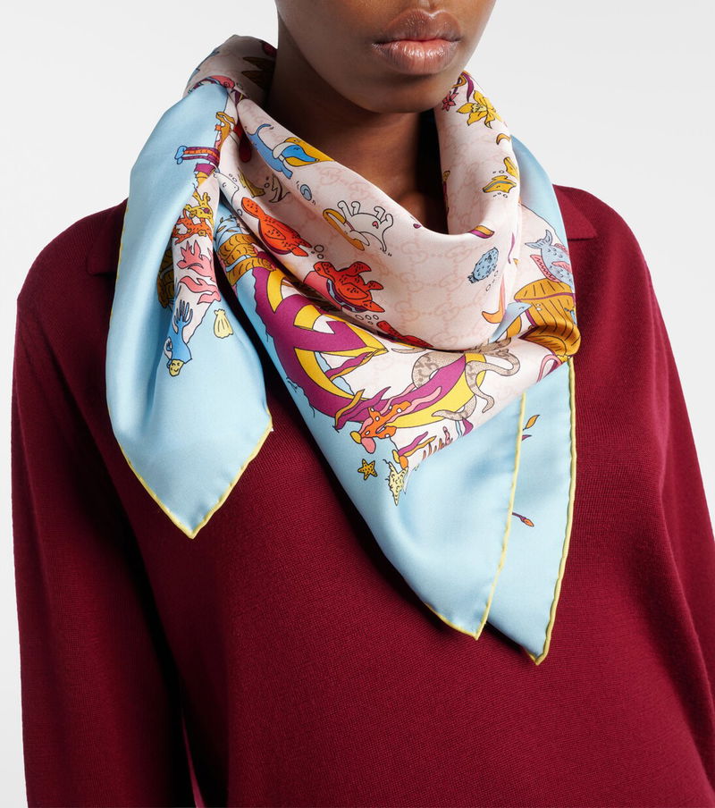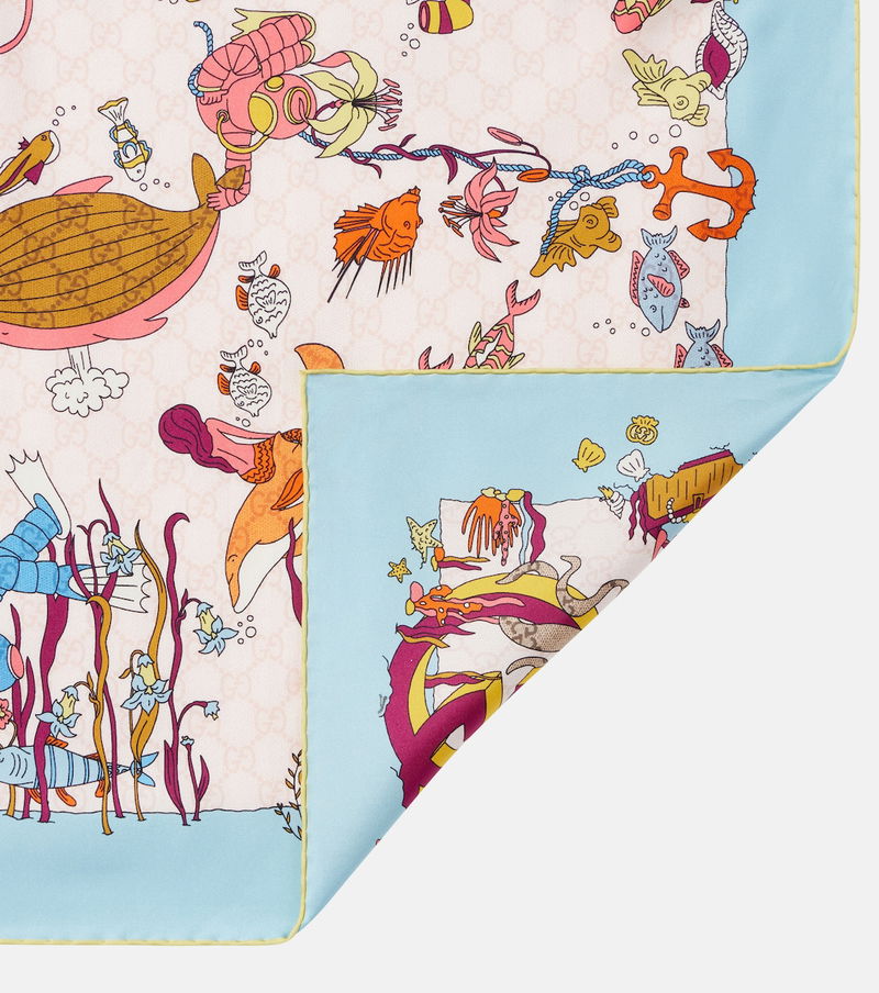 An unwavering commitment to craftsmanship and heritage sets Gucci apart. Woven from lustrous silk twill and printed with an eye-catching submarine scene with tonal GG patterning, this scarf makes for a chic final touch to any look.