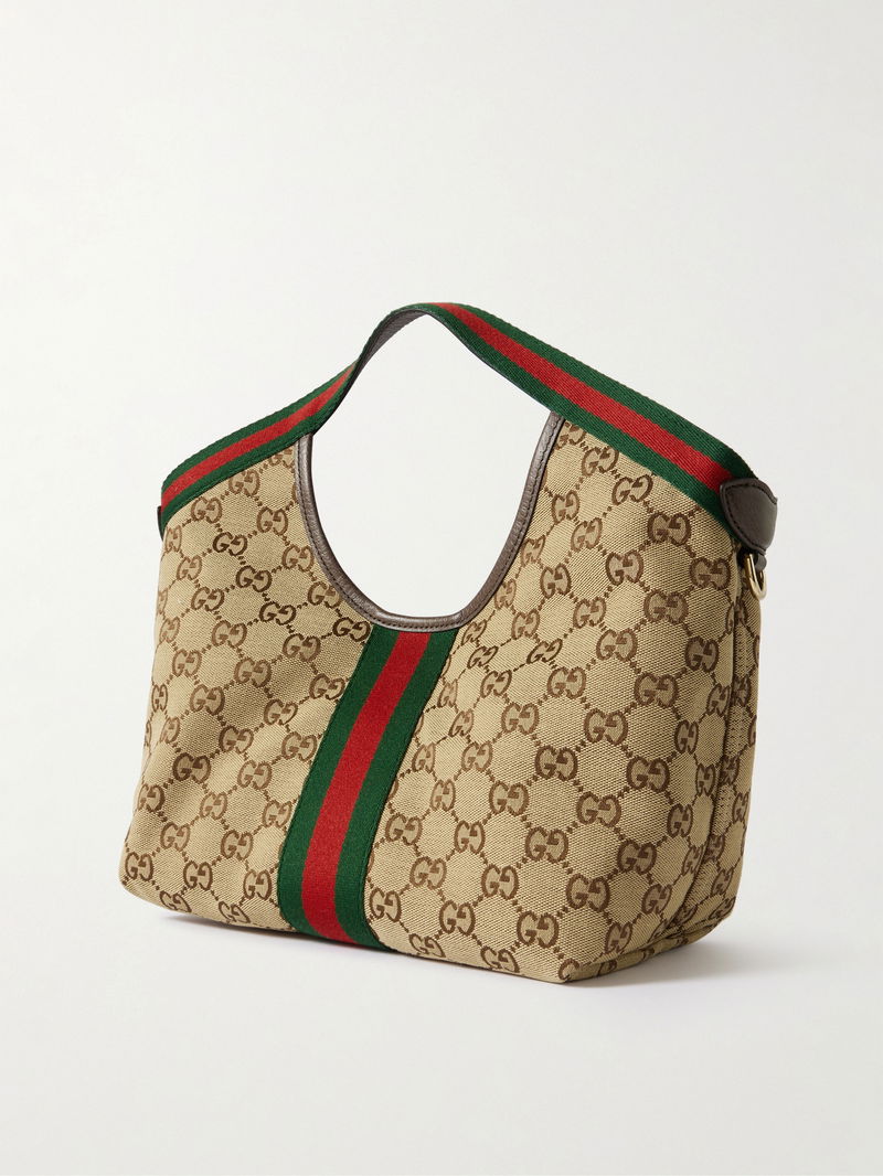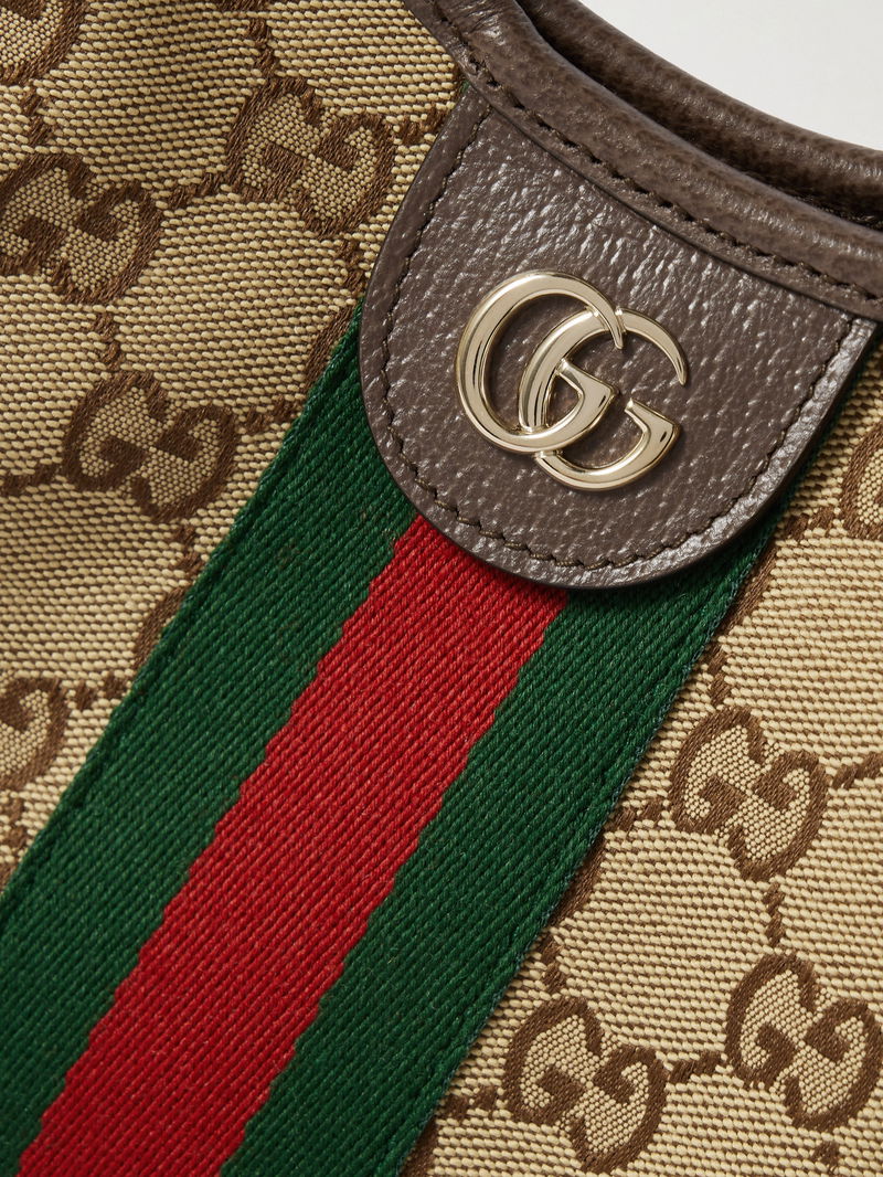 Giglio Small Textured Leather And Webbing-trimmed Canvas-jacquard Tote