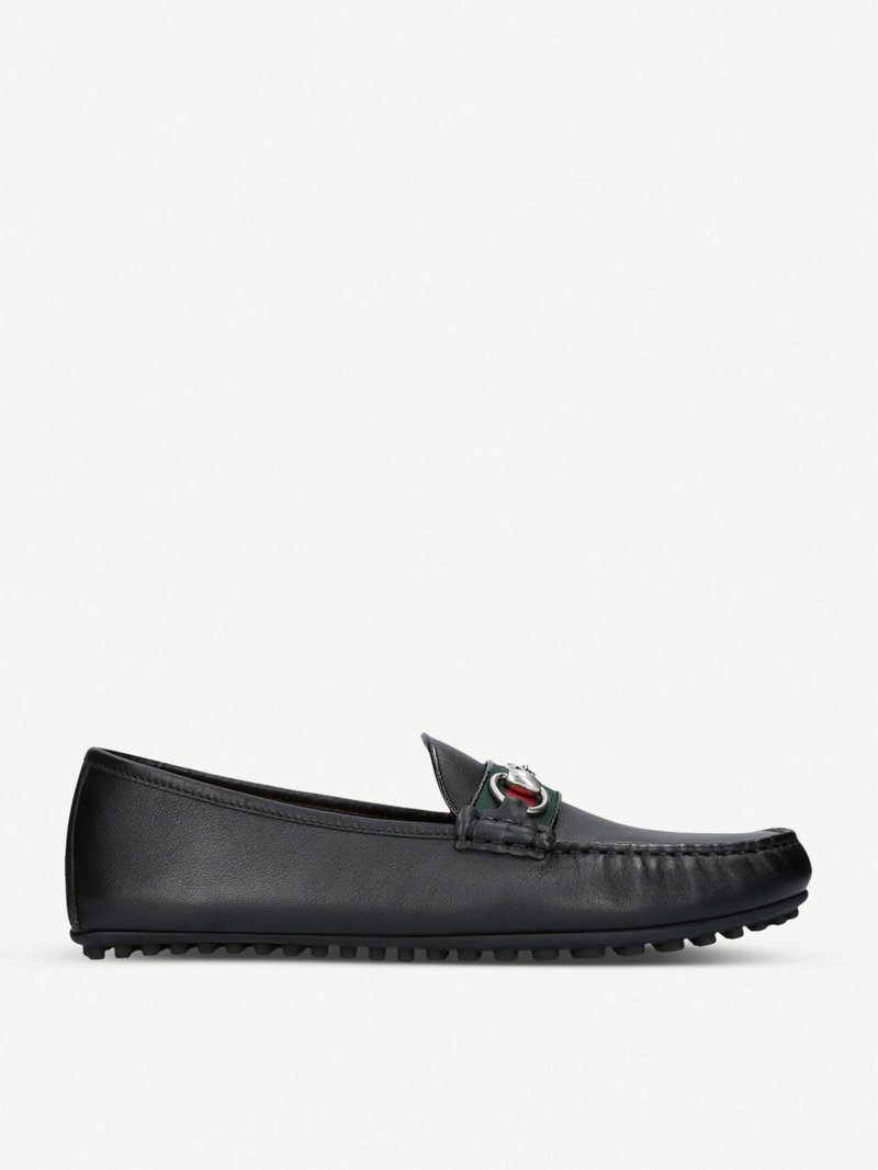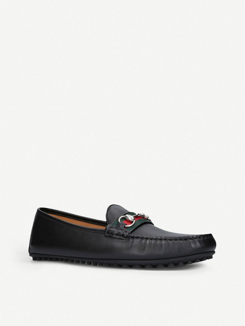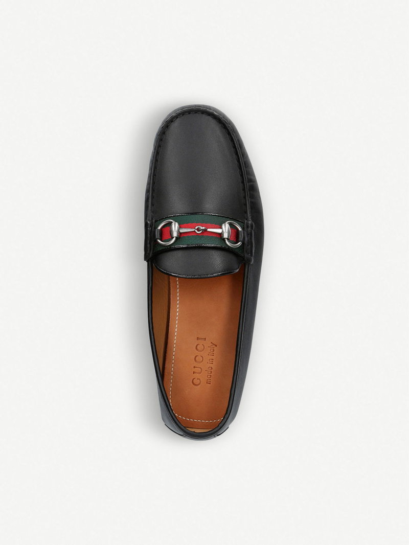 Crafted in Italy, the subtly grained leather pair are accented with the brand's iconic web stripes and topped with the instantly recognisable horsebit detail.