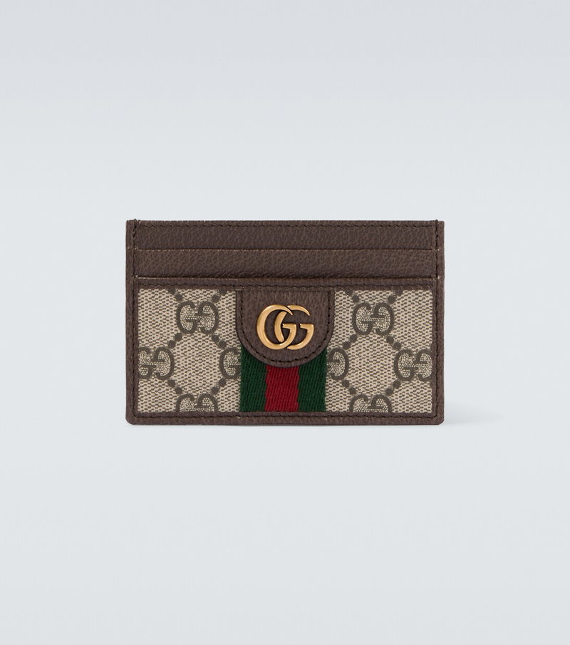 Debuted in 1951, Gucci's signature green and red Web stripe was inspired by equestrian saddle straps. It's featured upon the Ophidia card case, carefully crafted from GG canvas with tonal leather trims.