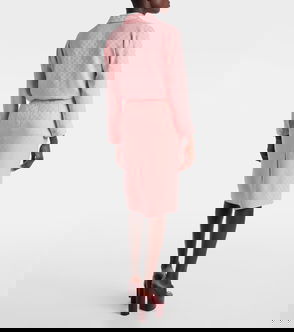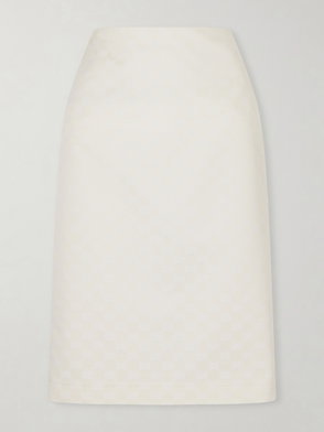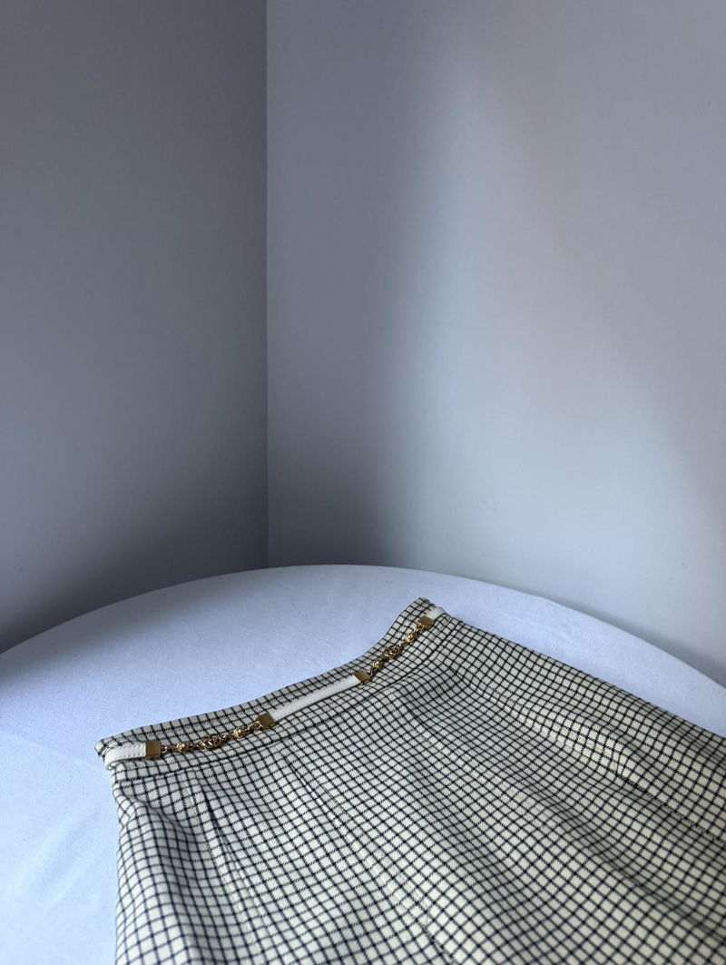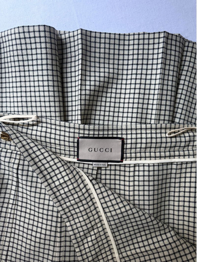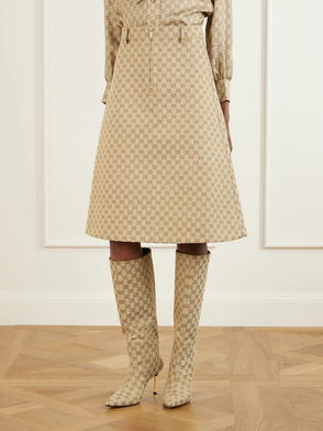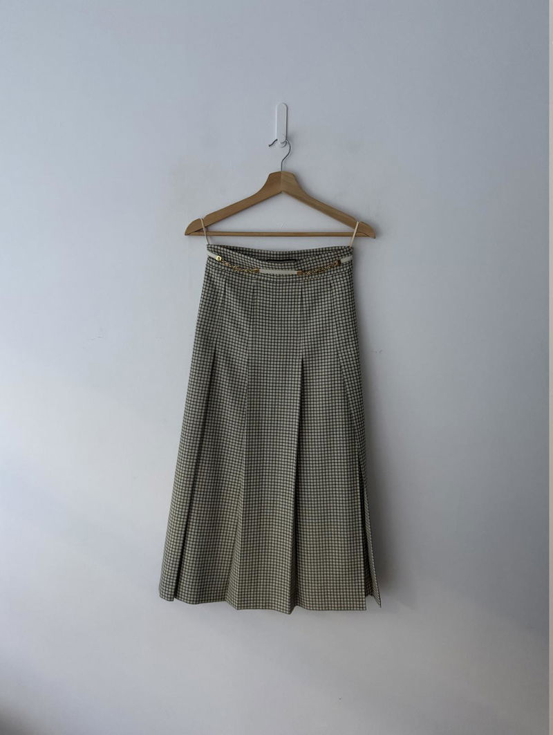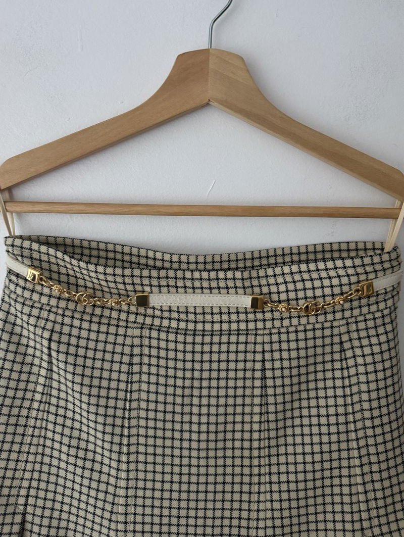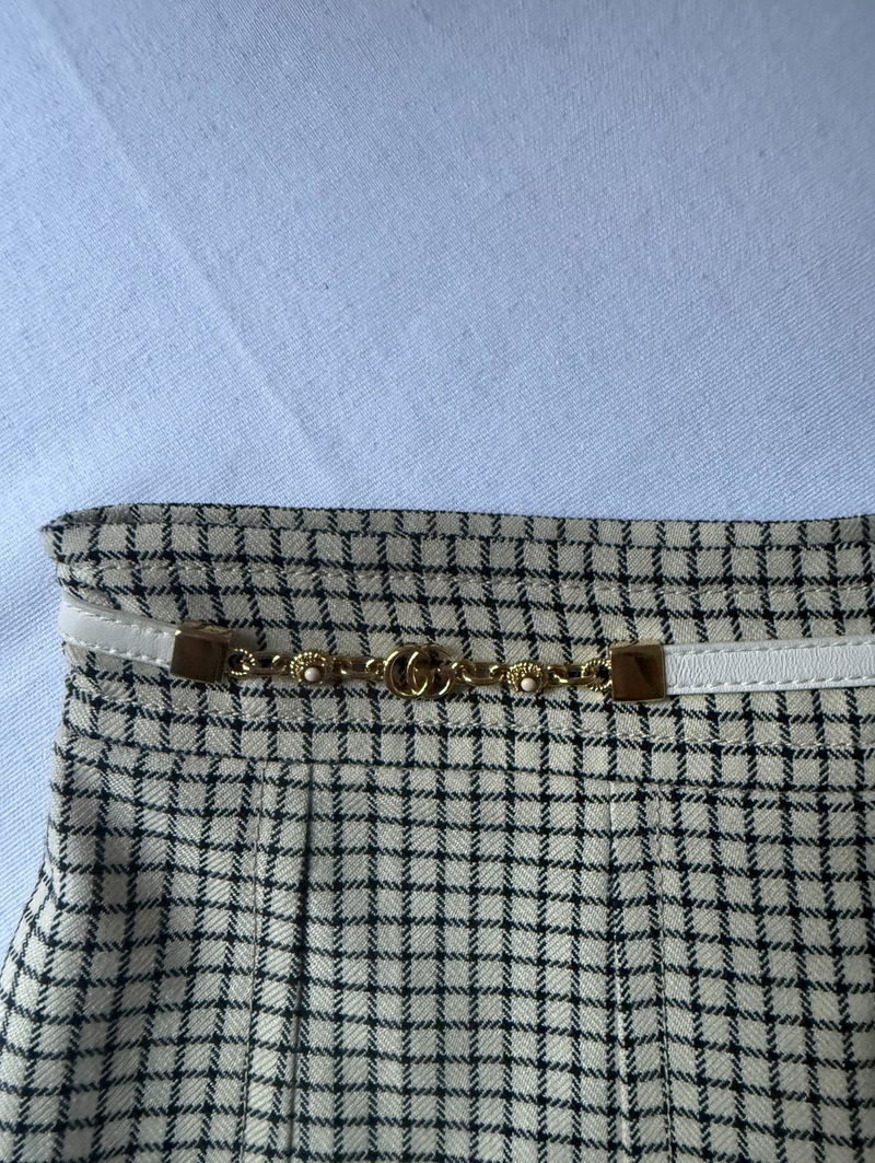 Wool midi-length skirt with a faux white belt with a gold Gucci logo detail.
