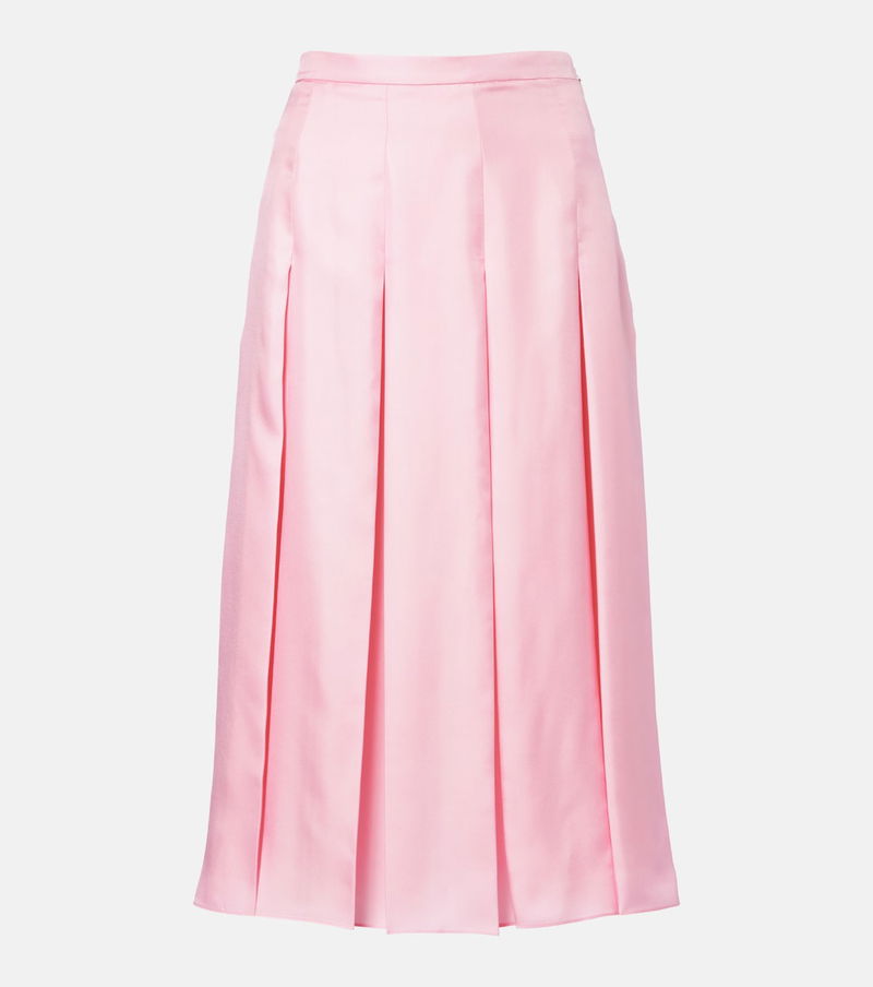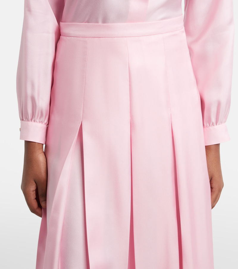 Pleated Silk Twill Midi Skirt