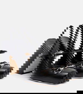 Crafted in Italy from patent-leather, they have pointed toes and elasticated slingback straps embellished with a gold-tone chain and the label's moniker as a few of the links. The 45mm heels offer comfortable lift.