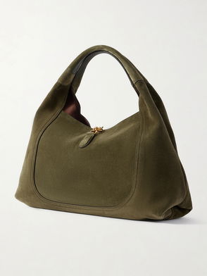 Gucci's tote features a half, magnified version of the label's signature horsebit plaque, which also serves as the fastening. Made from textured-leather, it has a slouchy shape that'll fit comfortably under your arm. There is more than enough space for your wallet, phone, keys and a small compact.
