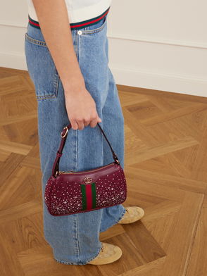 Gucci's tote features a half, magnified version of the label's signature horsebit plaque that also serves as the fastening. It's made from fluffy shearling and has a slouchy shape that'll fit comfortably under your arm. It's lined in smooth suede and has more than enough space for a continental wallet, phone, keys and small compact.