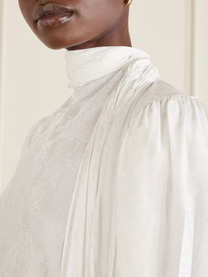Tie-detailed Floral-jacquard Satin-crepe Blouse